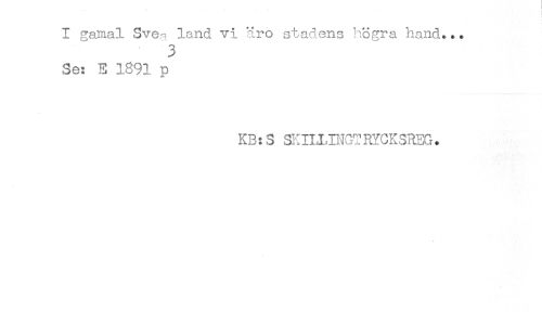 //// I gamal Sve^ land vi äro stadens högra hand... //// 3 //// Se: E 1891 p //// KB:S SKULINGTRYCKSREG. ////