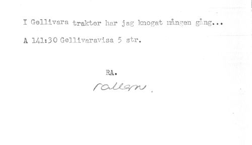 //// I Gellivara trakter har j ag knogat mången gång... //// A 141:30 Cellivaravisa 5 str. //// RA. ////