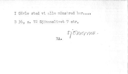 //// I Gävle stad vi alle mönstrad har.... //// - -..... - - j //// B 36, s. 72 Sjömanslivet 7 str. //// * //// RA. ' //// / i //// - //// < //// * ////