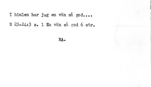 //// I himlen har jag en vän så god.... //// B 23-2^:3 s. 1 En vän så god 6 str. //// RA. //// * //// < //// i ////