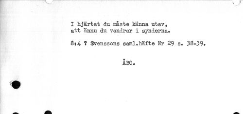 //// I hjärtat du inaste känna utav, //// att ännu du vandrar i synderna. //// 8:4 ? Svenssons saml.häfte Nr 29 s. 38-39. //// ÅBO. //// v ////