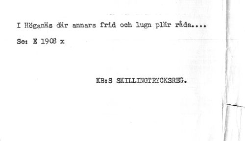 //// . . . . //// I Höganäs där annars frid och lugn plär råda.... //// Se: E 1908 x //// n //// KB:S SKULINGTRYCKSRBG. //// < //// F ////
