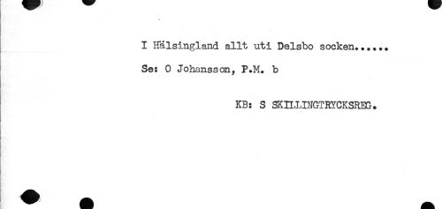 //// I Hälsingland allt uti Delsbo socken...... //// Se: 0 Johansson, P.M. b //// KB: S SKnJJNGTRYCKSREG. //// H, ////
