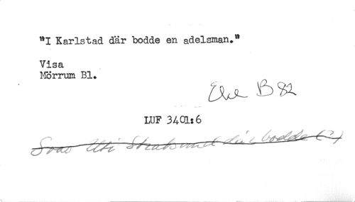 //// *I Karlstad där bodde en adelsman." //// Visa //// MSrrum Bl. //// ^dL- a A //// LUF 3401:6 ////
