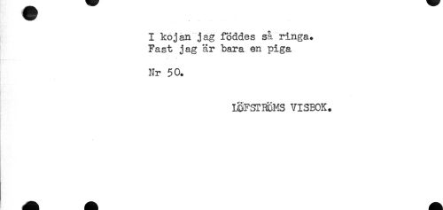 //// I kojan jag föddes så ringa. //// Fast jag är bara en piga //// Nr 50. //// LSFSTB&MS VISBOK. //// . ////