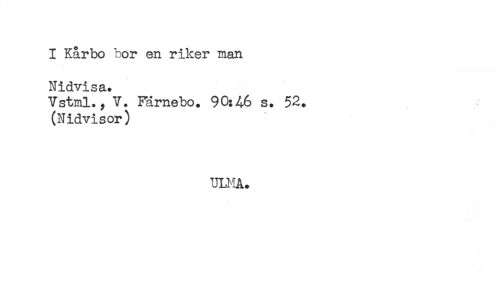 //// I Kårbo bor en riker man //// Nidvisa. //// Vstml., V. Himebo. 90:^6 s. 52. //// (Nidvisor) //// ULKA. ////