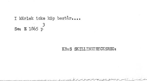 //// I kärlek icke köp består.... //// 3 //// Se; E 1865 p //// KB:S SKILUNGTBTCKSREG; ////