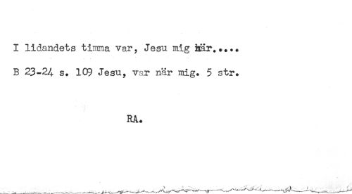 //// I lidandets tinma var, Jesu mig här..... //// B 23-24 s. 109 Jesu, var när mig. 5 str. //// RA. ////