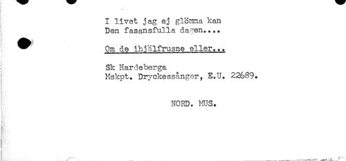 //// I livet jag ej glöima kan //// Den fasansfulla dagen.... //// ^^ Om de ihjälfrusne eller... //// Sk Hardeberga //// Mskpt. Dryckessånger, E.U. 22689. //// NORD. MUS. //// vh ' - ////