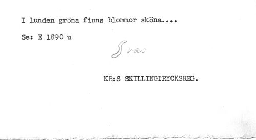 //// I lunden gröna finns bloimor sköna.... //// Se: E 1890 u //// KB:S SKILLINGTRYCKSRBG. ////