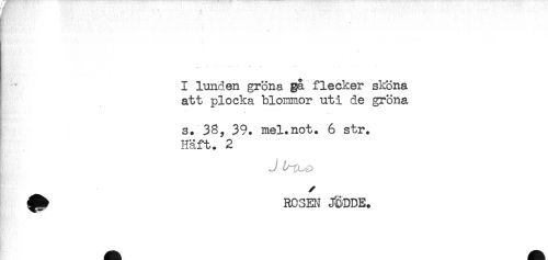 //// I lunden gröna B& flecker sköna //// att plocka blommor uti de gröna //// s. 38, 39. mel.not. 6 str. //// Häft. 2 //// J //// ^ ROSm J^DDE. ////