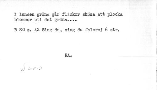 //// I lunden gröna går flickor sköna att plocka //// blommor uti det gröna.... //// B 80 s. 42 Sing du, sing du falerej 6 str. //// i //// i //// ! //// ! //// t //// ) //// RA. //// ? //// J ^ ^ ^ //// ! //// < //// ! ////