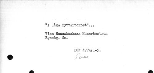 //// HRt/- , T ..*! , //// "I låga ryttartorpet"... //// Visa Husarhustrun //// Rgssbg. Sm. //// LUF 4774:1-5. ////