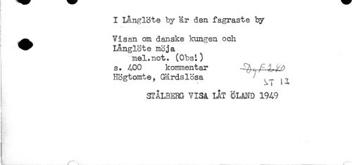 //// I Långlöte by är den fagraste by //// ! //// i //// ^^ Visan om danske kungen och //// ^^ Långlöte mö ja //// mel.not. (Obs^ //// s. 400 kommentar //// Högtomte, Gärds lösa , , //// Si ' //// STÅLBERG VISA LÅT ÖLAND 19A9 //// t //// < //// t //// } //// ! //// t //// t //// t //// < //// } * ////