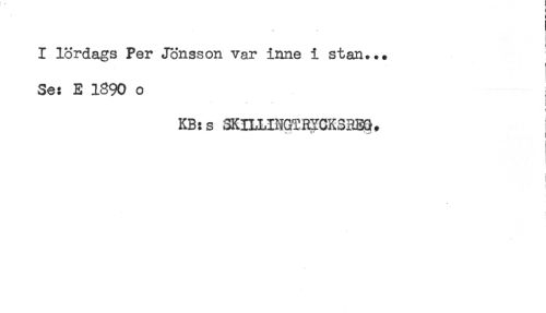 //// I lördags Per Jönsson var inne i stan... //// Se: E 1890 o I //// * //// < //// KB:s SKILLINGIRYCKSREQ. //// ] ////