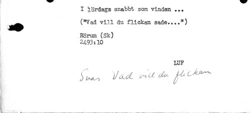 //// I lördags snabbt som vinden ... //// ("Vad vill du flickan sade....*) //// Rorum (Sk) //// 2A93:10 //// i //// ? //// LUF ////