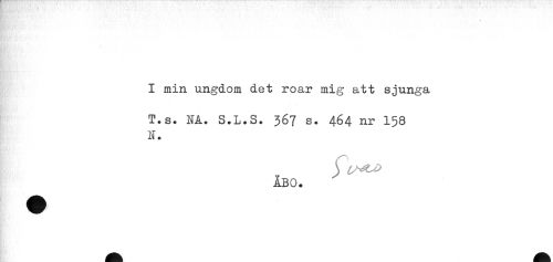 //// - //// I min ungdom det roar mig att sjunga //// T.s. NA. S.L.S. 367 s. 464 nr 158 //// N. //// ÅBO. ////