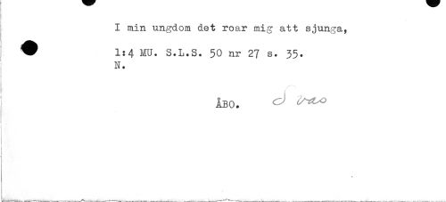 //// I min ungdom det roar mig att sjunga, //// j W 1:4 MU. S.L.S. 50 nr 27 s. 35. //// N. //// / //// ÅBO. //// i //// i //// j ////