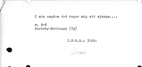 //// I min ungdom det rogar mig att sjunga.... //// s. 4-6 //// Surteby-Kattunga (Vg) //// I.F.G.H.: 3168. //// _ ^^ ^ ////