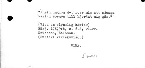 //// (Visa om olycklig kärlek) //// Härj. 17679:8, s. 6-8, 21-22. //// Ericsson, Salomon. //// (Enstaka kärleksvisor) //// ULMA. //// j ////