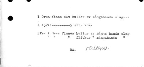 //// b - * //// ] //// I Orsa finns det kullor av mångahanda slag... //// A 132:1----5 str. kom. //// jfr. I Orsa finnes kullor av många handa slag //// " " " flickor " mångahanda " //// RA. F : - ' ^^' ' ? * ////