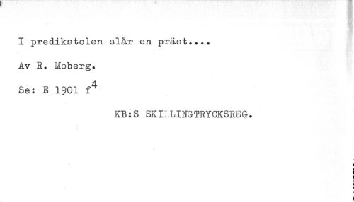 //// I predikstolen slår en präst.... //// Av R. Moberg. //// Se: E 1901 f^ //// KB:S SKILLINGTRYCKSREG. //// r //// t //// H //// i //// i //// B ////