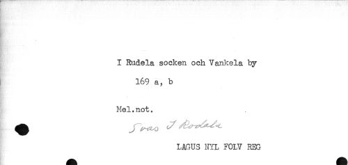 //// ... //// B //// I Rudela socken och Vankela by //// i 169 a, b //// - //// ... //// Mel.not. //// LAGUS NYL FOLV REG ////