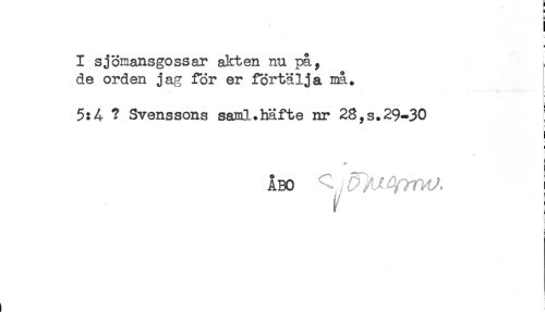 //// B //// i //// i //// I sjömansgossar akten nu pa, ^ //// de orden jag för er förtälja ma. //// 5:4 ? Svenssons saml.häfte nr 28,s.29-30 //// - //// ! //// ! //// ÅBO ^ / ! //// ) ////