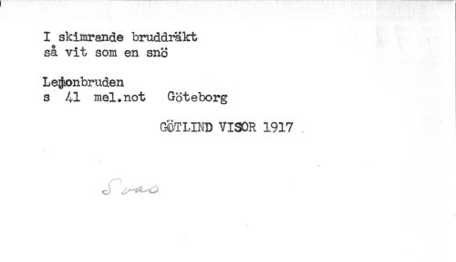 //// I skimrande bruddräkt //// så vit som en snö //// Legionbruden //// s 41 mel.not Göteborg //// GÖTLIND VISOR 1917 . //// T ////