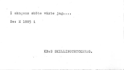 //// I skogens sköte växte jag.... //// Se: E 1885 i //// i //// KB:S SKILLINGTRYCKSREG. ////