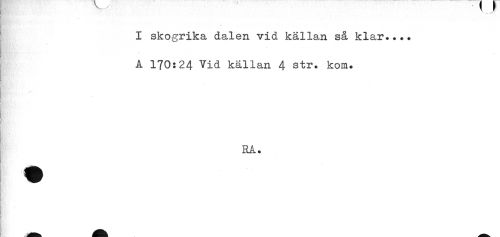 //// g ' //// I skogrika dalen vid källan så klar.... //// A 170:24 Vid källan 4 str. kom. //// y //// iHif V //// if' //// RA. //// iy ////