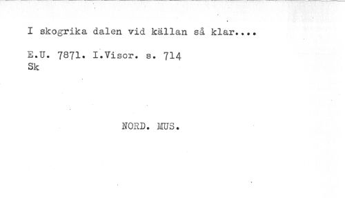 //// I skogrika dalen vid källan så klar.... //// E.U. 7871. 1.Visor. s. 714 //// Sk //// NORD. MUS. //// * ////