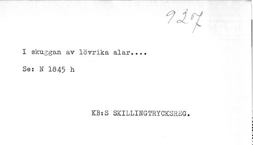 //// y //// I skuggan av lövrika alar.... //// Se: N 1845 h //// KB:S SKILLINGTRYCKSREG. //// i //// H //// H //// at ////