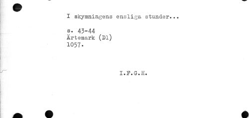 //// I skymningens ensliga stunder... //// ! //// s. 43-44 //// Ärtemark (Dl) //// 1057. //// - //// I * F. G +11+ //// ; , //// Hy iH ////