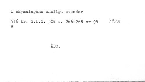 //// I skymningens ensliga stunder //// 5:6 Br. S.L.S. 508 s. 266-268 nr 98 //// N //// ÅBO. //// * < ** * ////