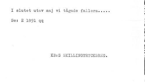 //// I slutet utav maj vi tågade fallera..........' //// H //// Se: E 1891 qq : //// H //// s //// i //// i //// ! //// KB:S SKILLINGTRYCKSREG. ' //// ! ////