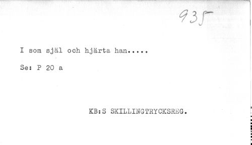//// I som själ och hjärta han..... //// Se: P 20 a //// KB:S SKILLINGTRYCKSREG. //// H //// H //// H //// a //// H //// H //// t //// H ////