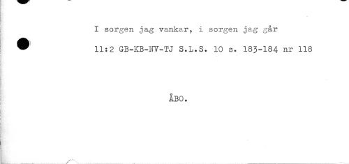 //// I sorgen jag vankar, i sorgen jag går //// ^ 11:2 GB-KB-NV-TJ S.L.S. 10 s. 183-184 nr 118 //// ! //// i ÅBO. //// 4< //// ! ////