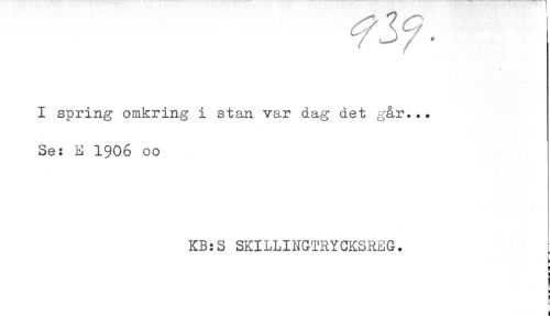 //// I spring omkring i stan var dag det går... //// Se: E 1906 00 //// KB:S SKILLINGTRYCKSREG. //// < //// i //// r //// i ////