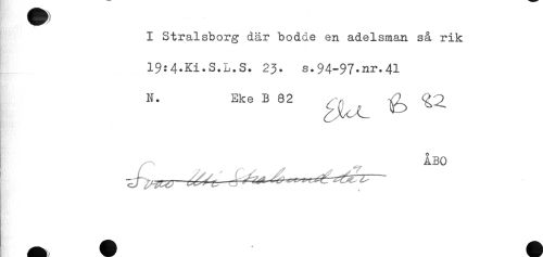 //// I Stralsborg där bodde en adelsman så rik //// 19:4.Ki.S.L.S. 23. s.94-97.nr.41 //// N. Eke B 82 ^ ^ ^ ////