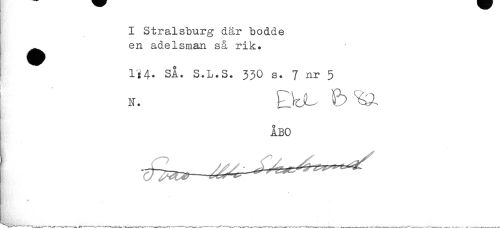 //// I Stralsburg där bodde //// en adelsman så rik. //// lt4. SÅ. S.L.S. 330 s. 7 nr 5 //// N. r ^ //// ÅBO //// L. ////