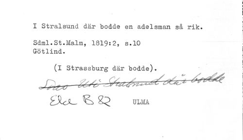 //// i //// t //// ] //// I Stralsund där bodde en adelsman så rik. //// Sdml.St.Malm, 1819:2, s.10 //// * //// Götlind. //// (i Strassburg där bodde). ! //// L)^ Y: ULMA ////