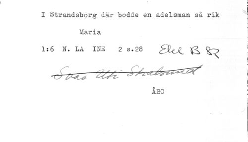 //// ! //// i //// I Strandsborg där bodde en adelsman så rik //// Maria //// i //// i //// 1:6 N. LA INE 2 s.28 ^ ^ //// i //// ÅBO ! //// i. ////