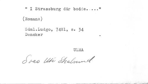 //// " I Strassburg där bodde....." //// (Romans) //// Sdml.Ludgo, 7481, s. 34 //// Dencker //// ULMA ////
