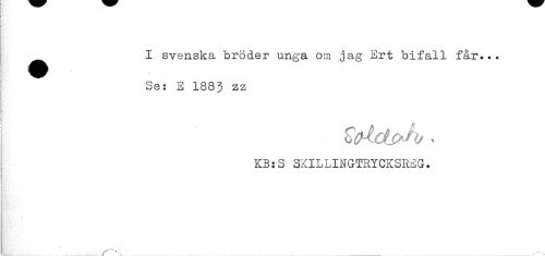 //// I svenska bröder unga om jag Ert bifall får... //// Se: E 1883 zz //// KB:S SKILLINGTRYCKSREG. //// - //// gxnY //// * ////