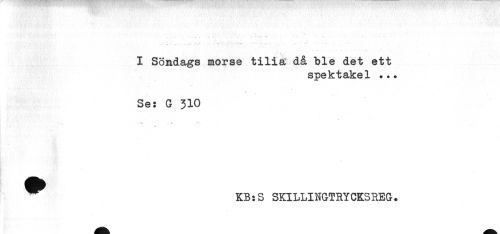 //// .. ..--- '..."' '. -.......- - - -- //// I Söndags morse tilia då ble det ett //// spektakel ... //// Se: G 310 //// '*< * * . * //// ^ KB:S SKILLIN&TRYCKSREG. ////