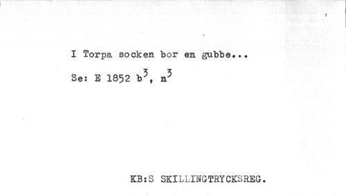 //// t //// I Torpa socken bor en gubbe... //// Se: E 1852 b^, n^ //// < ////