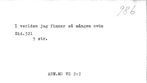 //// I verlden jag finner så mången ovän //// Sid.321 //// 9 str. //// ARW.MS VS 2:2 ////