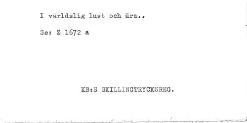 //// I världslig lust och ära.. //// Se: Z 1672 a //// KB:S SKILLINGTRYCKSREG. ////