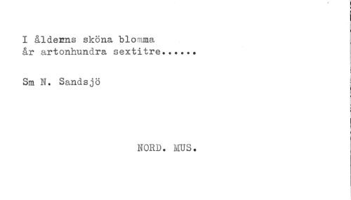 //// I ålderns sköna blomma //// år artonhundra sextitre...... //// Sm N. Sandsjö //// NORD. HUS. ////